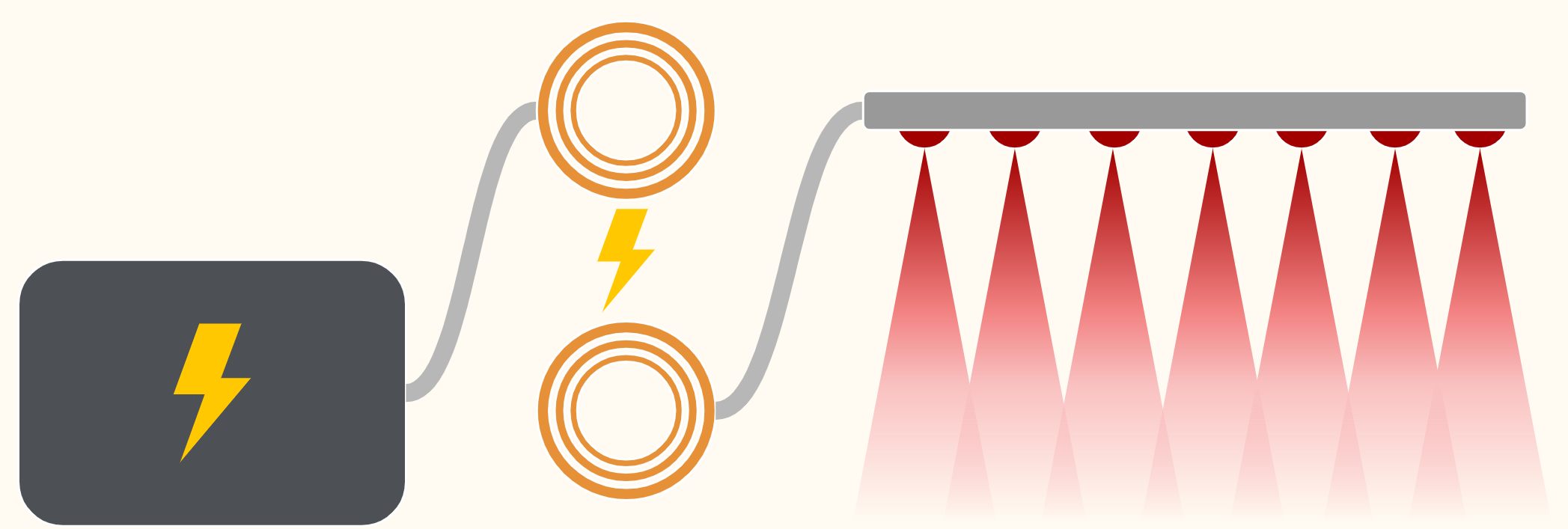 Our device uses the power of red light to induce natural healing of cells within the body. Using inductive charging, we can allow our device to function with more portability. It will allow the battery to be delocalized from the point of contact. This will reduce the over operating temperature of the device. Unlike other commercial red light devices, ours will be fastened and secured to allow as uniform of light irradiation as possible, to maximize the efficiency of the device's healing.